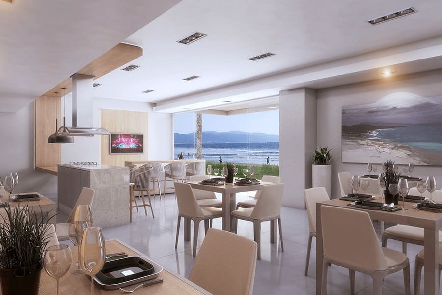 As áreas privativas variam de 59m² até 65m², tendo 2 dormitórios e janela ampliada, frente mar.