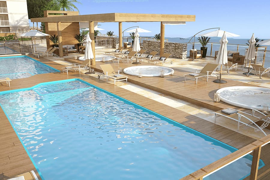 2 Elevadores por torre; Ampla sacada com churrasqueira a carvão; 3 Conjuntos de piscinas; 9 Spas; 6 Salões c/ churrasqueira; 3 Salões Gourmet; Open mall; Salão de festas; 2 Salas de jogos Quadra poliesportiva; Garagem coberta; 2 Brinquedotecas; 4 Playground; 3 Espaços Zen; Pistas de caminhada; 2 Redários; Espaço pet; Cancha de bocha; 2 Espaços academia externa; Quadra de areia; 3 Acessos carga/descarga; 2 Bicicletários.