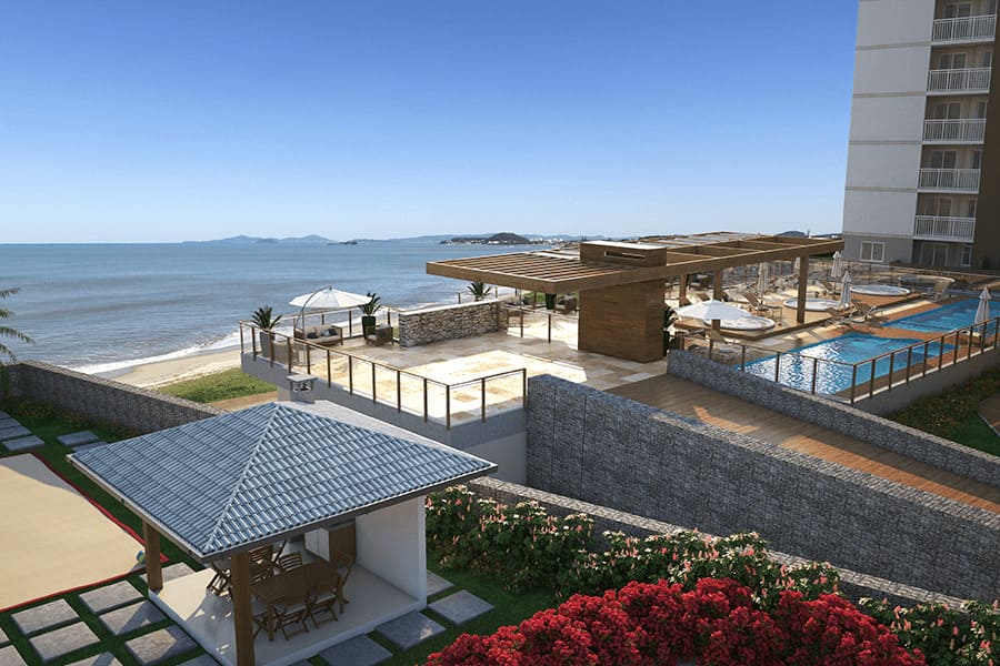 As áreas privativas variam de 59m² até 65m², tendo 2 dormitórios e janela ampliada, frente mar.