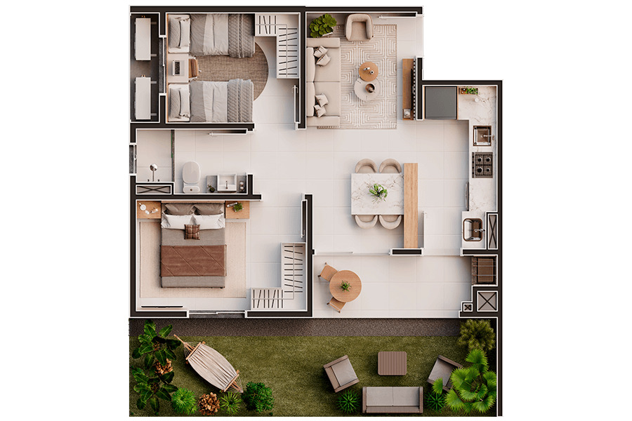 E para você que não abre mão do conforto de uma casa, mas com toda a segurança de um condomínio fechado, o Baía Azul conta com unidades Giardinos. Além de todo um condomínio com diversas áreas de lazer equipadas e decoradas.
