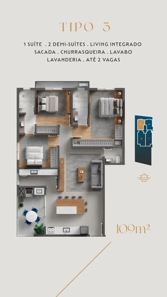 Apartamentos amplos e elegantes de 109 m² a 176 m², todos com living integrado, sacada com churrasqueira e suítes espaçosas, planejados para oferecer conforto, bem-estar e valorização do seu investimento.